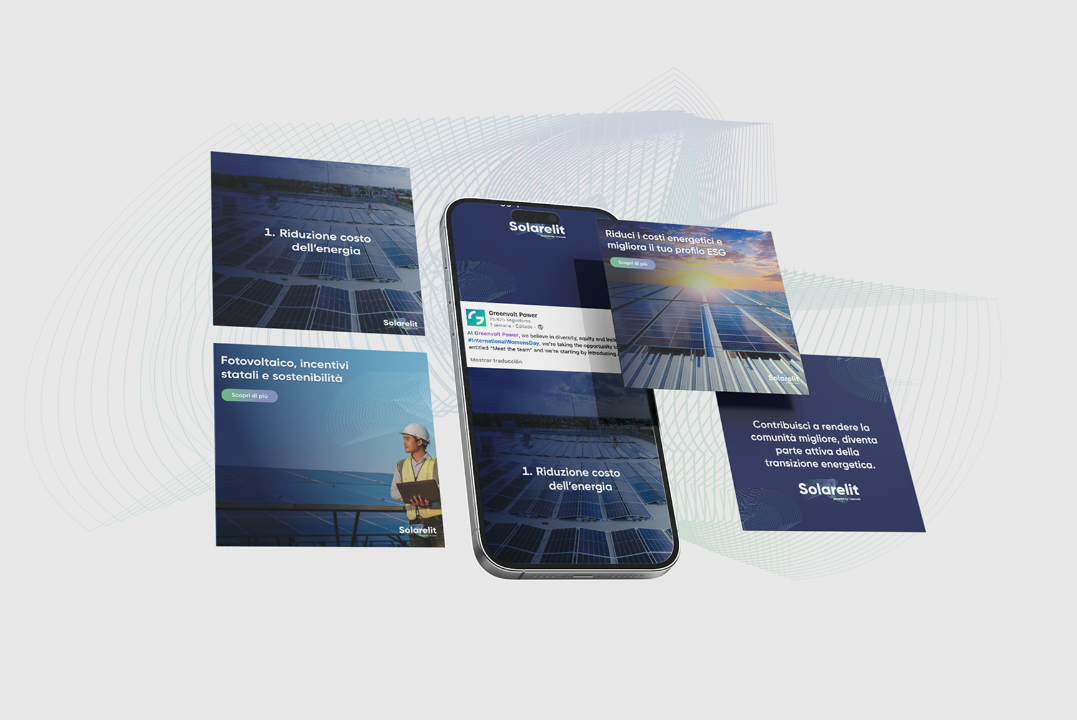 Sviluppo di un ecosistema visivo completo per Solarelit, player internazionale nel settore delle energie rinnovabili. Il progetto ha supportato il brand in eventi fieristici di rilievo e nella comunicazione digitale attraverso materiali video, grafici e social dal forte impatto e perfettamente coerenti su ogni touchpoint.